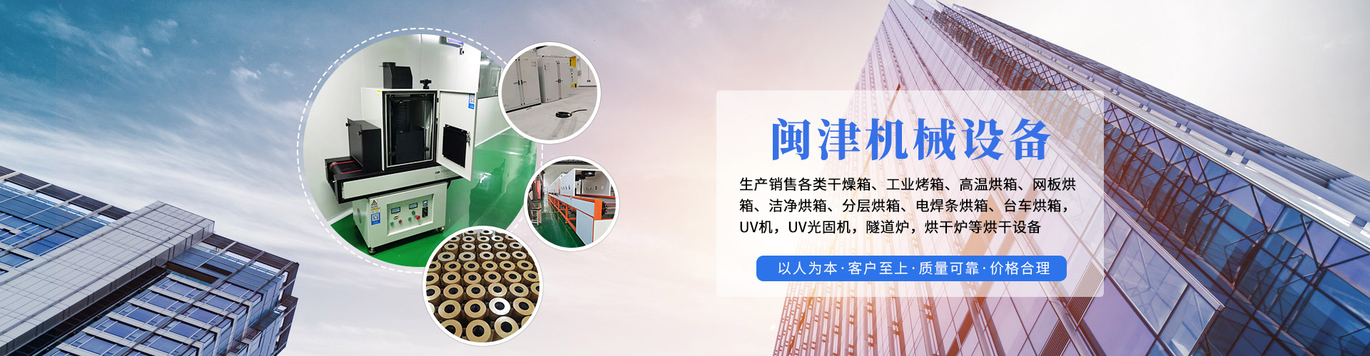 天津閩津機械設備有限公司是一家專業生產銷售各類干燥箱、工業烤箱、高溫烘箱、網板烘箱、潔凈烘箱、分層烘箱、臺車烘箱,UV機,UV光固機,隧道爐,烘干爐等烘干設備,適用于印制線路板行業,電鍍行業、電機行業、電力電子電容器行業、汽車行業、PVC塑模行業、儀器儀表行業、金屬制品行業等,也可根據客戶要求訂制各類非標設備。